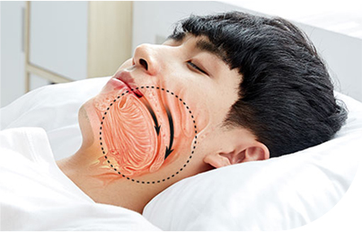 수면 중 공기가 통과하는 상기도가 충분히 열리지 않아, 좁은 기도(숨구멍)를 통과하는 공기에 의해 목젖,