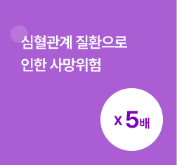 사망 2배, 심혈관계 질환으로 인한 사망 5배 등 위험도가 증가합니다.